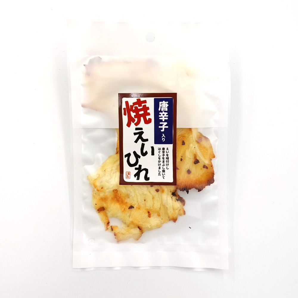 味付したえいひれに唐辛子をまぶし焼きあげました。